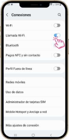Paso 2: Busca la opción de Llamada Wi-Fi y actívala/desactívala para utilizar o no la opción.