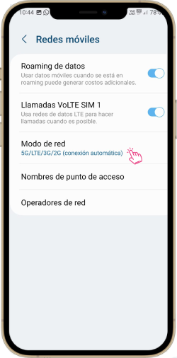 Ingresa a Ajustes, después en Conexiones, luego en Redes móviles y Modo de Red.
