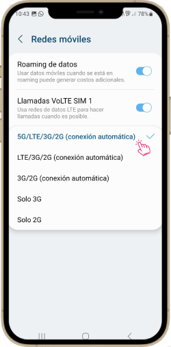 Ingresa a Configuración, después en Red celular y luego en Selección de Red donde debes seleccionar Automática.