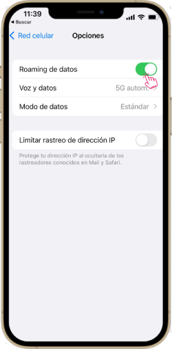 Ingresa a Configuración, después en Red Celular y luego en Opciones donde puedes activar el servicio de Roaming de datos.