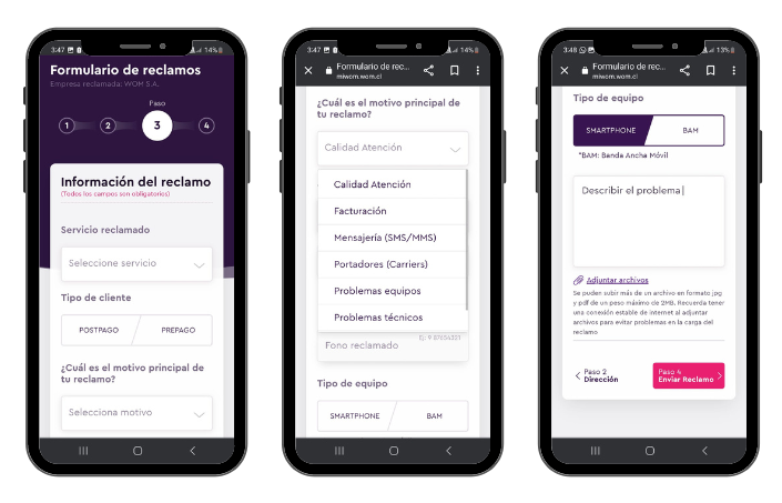 Si tu reclamo tiene que ver con la calidad de atención, facturación, problemas técnicos u otros, accede a nuestra sucursal virtual MiWOM siguiendo los pasos descritos a continuación.