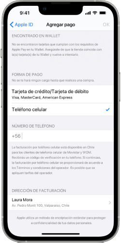 Sigue estos pasos para configurar tu método de pago, recuerda que debes tener la más reciente versión de iOS.