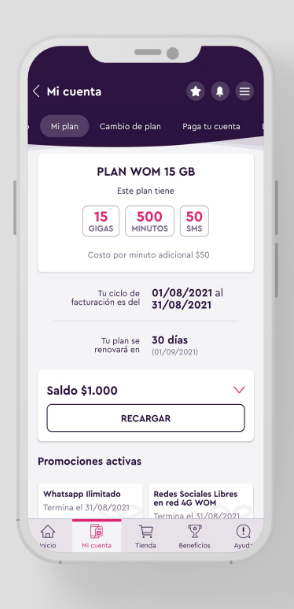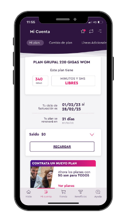 Para revisar tu plan, puedes hacerlo a través de nuestras plataformas digitales, la App WOM o la sucursal virtual MiWOM.