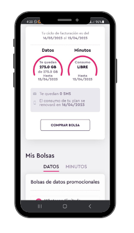 También puedes ver las promociones activas que están incorporadas en tu plan y hacer recargas en caso de que tu plan sea cuenta controlada (Postpago Híbrido).