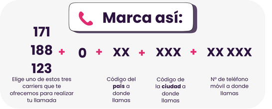 Para marcar desde tu celular, si llamas a un teléfono móvil en el extranjero: