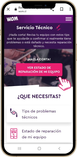Puedes hacerlo en nuestros canales digitales como la App WOM y la sucursal virtual MiWOM. Al ingresar deberás pinchar en “Ver el estado de reparación de mi equipo”.
