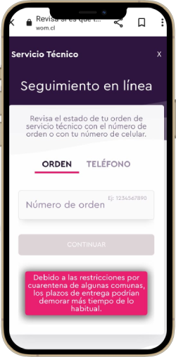 Para hacer seguimiento en línea de tu orden de servicio técnico lo puedes realizar con el número de orden o con tu número de celular.
