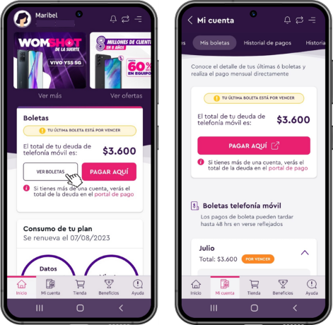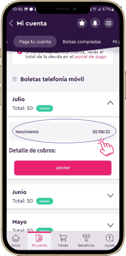 • En “Mis boletas” podrás revisar tu boleta y la fecha de vencimiento.