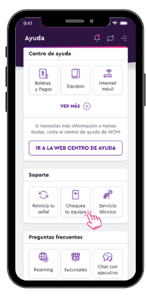Puedes acceder a Chequea tu equipo desde la App WOM, sección “Ayuda”.