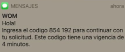 2. Vía SMS recibirás el código de acceso a MIWOM.