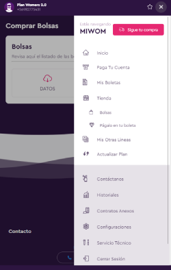 Si eres cliente con PLAN, desde tu sesión en MIWOM podrás acceder diferente información: