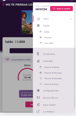Si eres cliente PREPAGO, desde tu sesión en MIWOM podrás acceder a distintas secciones: