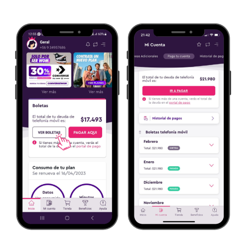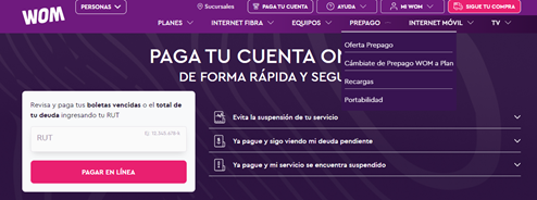 Para pagar tu cuenta o boleta online de forma rápida puedes hacerlo usando nuestros canales digitales desde la APP de WOM o MIWOM o el sitio www.wom.cl.